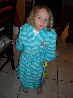 Today, she came downstairs dressed all by herself in her favorite pajamas, holding the magnificent night light pilfered from Crown Plaza hotel by a dear friend, and said, "Mom, I've changed the green light in my room several times." I said, "Oh, really? How many times did you change it?" "Several times." she said matter-of-factly. It was so cute.